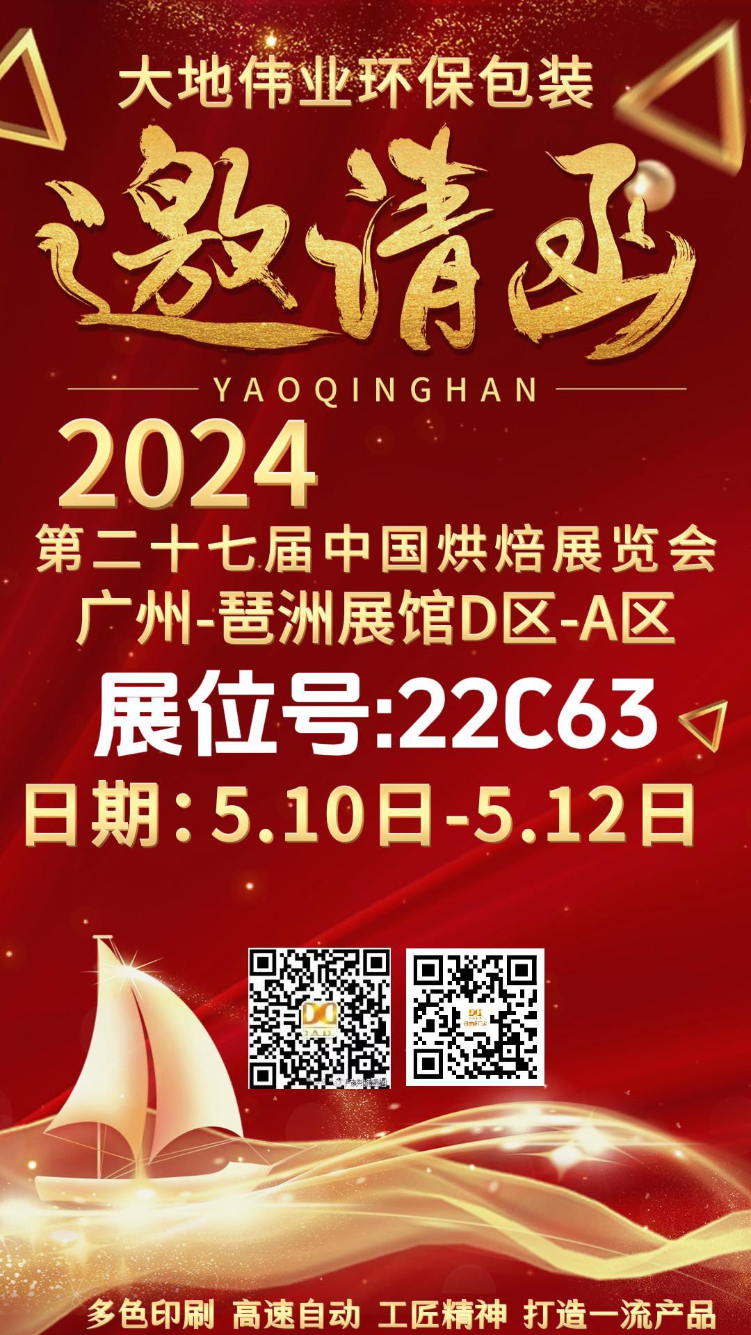 廣東大地偉業(yè)環(huán)保包裝科技股份有限公司(以下簡稱“我公司”)誠摯地邀請您蒞臨我司在“2024第二十七屆中國烘焙展覽會”上的展位。本次展覽會將于2024年5月10日至12日在中國廣州廣交會展館D區(qū)+A區(qū)隆重舉行,我公司的展位號為22C63。