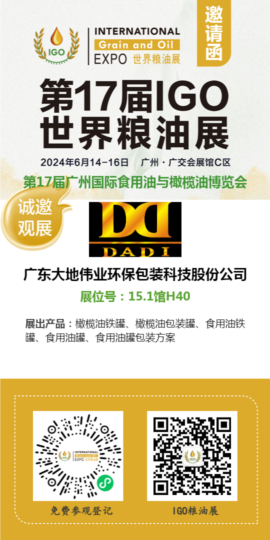 作為本次展會(huì)的參展商之一,廣東大地偉業(yè)環(huán)保包裝科技股份公司深感榮幸。我們將攜帶一系列最新產(chǎn)品亮相展會(huì),包括高品質(zhì)的橄欖油鐵罐、橄欖油包裝罐、食用油鐵罐以及創(chuàng)新的食用油罐包裝方案。我們的展位號(hào)為15.1館H40,期待與您進(jìn)行深入的交流和合作。