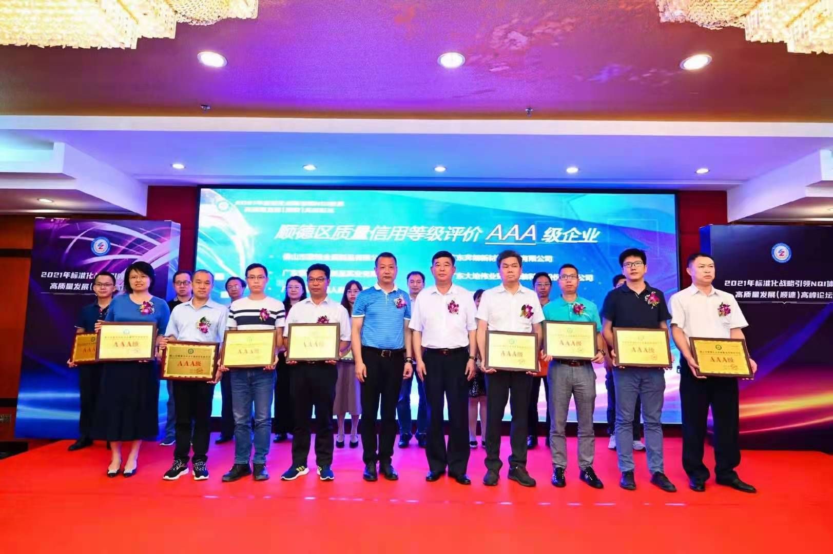 祝賀“標(biāo)準(zhǔn)化戰(zhàn)略引領(lǐng)NQI體系高質(zhì)量發(fā)展(順德)高峰論壇”圓滿成功,我司喜獲順德質(zhì)量信用等級(jí)AAA企業(yè)稱號(hào).