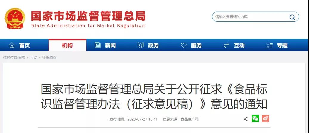 7月27日國家市場監(jiān)督管理總局發(fā)布了關(guān)于《食品標(biāo)識監(jiān)督管理辦法(征求意見稿)》公開征求意見的通知。此次是根據(jù)收集到的意見進(jìn)行了修改,再次征求意見。